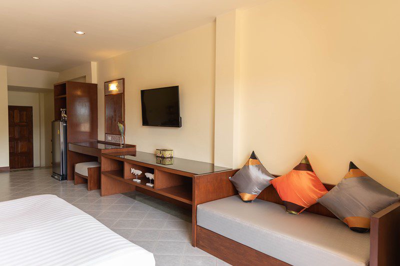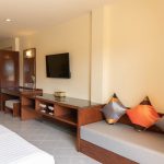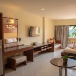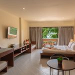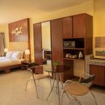 ห้องขนาดใหญ่ พื้นที่ 48 ตารางเมตร วิวเมืองตกแต่งสวยงามพร้อมโซฟา มีพื้นที่ครัวพร้อมไมโครเวฟ ตู้เย็นเครื่องใหญ่ และโต๊ะทานข้าว ระเบียงกว้างขวาง เหมาะสำหรับครอบครัวหรือผู้เข้าพักที่ชอบห้องกว้างและสิ่งอำนวยความสะดวกที่ครบครัน